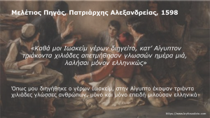 1598, Μελέτιος Πηγάς, Πατριάρχης Αλεξανδρείας. “30.000 κομμένες γλώσσες στην Αίγυπτο, μόνο και μόνο επειδή μιλούσαν ελληνικά”.